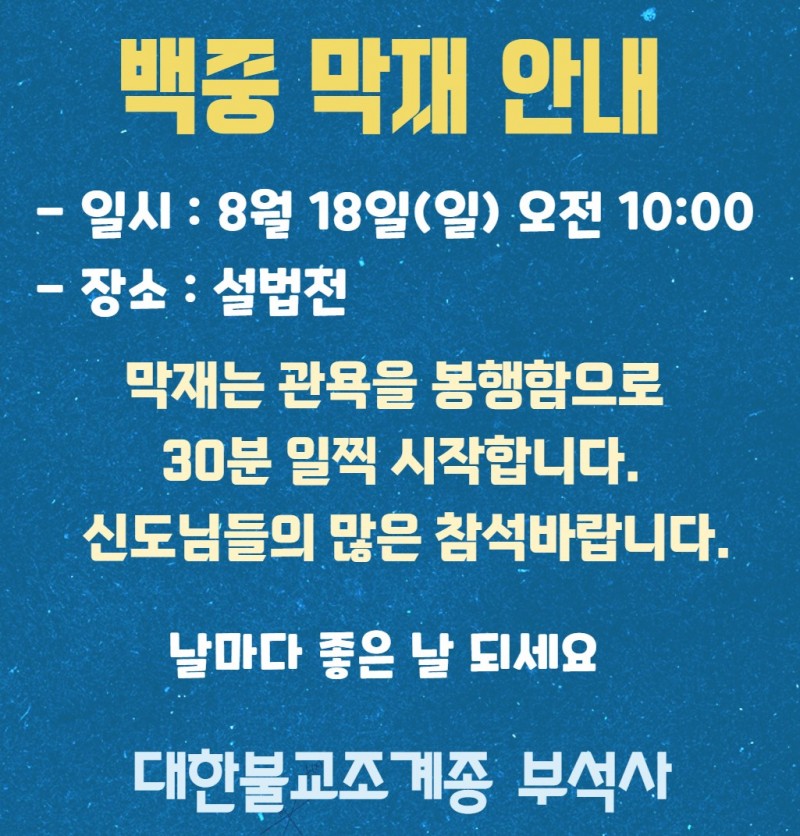 - 막재 : 8월 18일(일) 오전 10:00 설법전