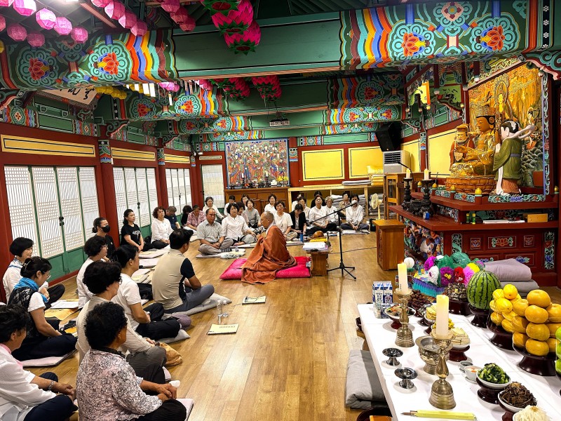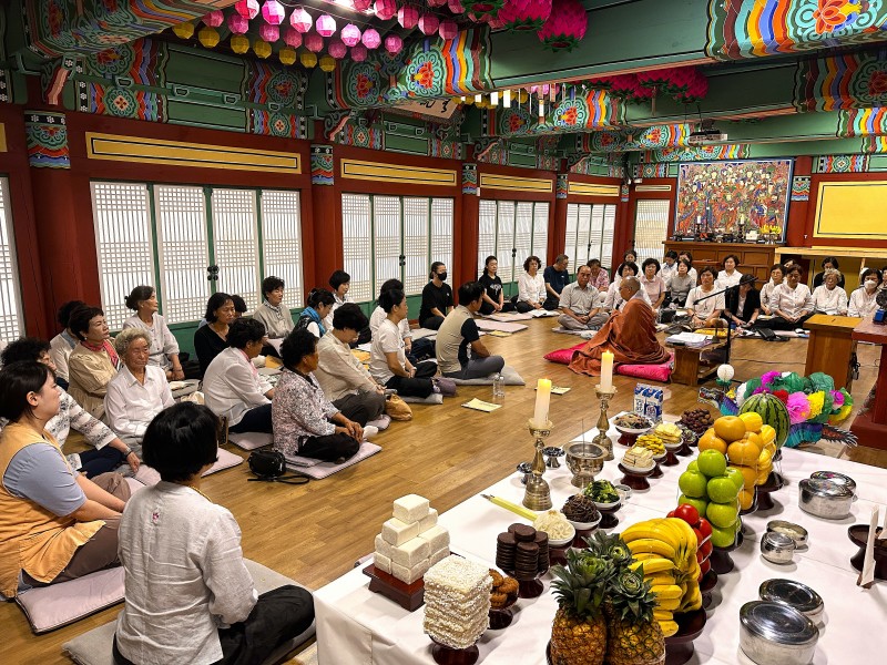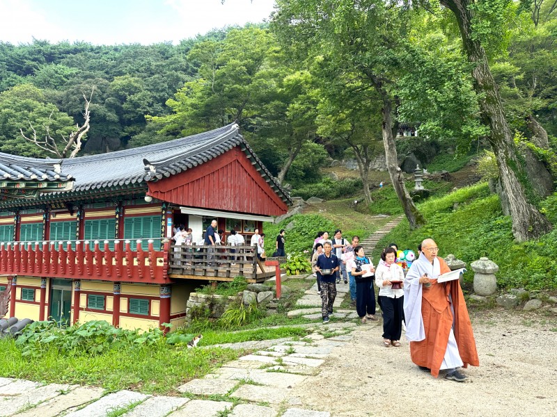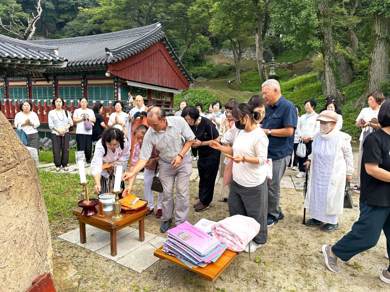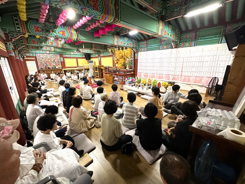 백중 49재 및 하안거 기도 회향 페이지 정보 작성자최고관리자 댓글 0건 조회 155회 작성일 24-08-18 14:26 본문 전국 선방에서 수행 정진하시는 스님들을 따라 90일 간 열심히 기도하였던 하안거 기도와 선망부모, 조상님들, 인연영가의 극락왕생을 발원하는 49일 백중 기도를 회향하였습니다.많으신 신도님들이 동참하셨습니다.오늘 주지스님의 하안거기도 회향법문과 백중 막재 집전은 참석 대중들에게 큰 감화를 주었습니다.아직도 여름이 한창입니다.신도님들 모두 건강에 유의하시어건승하시길 바랍니다. 목록
